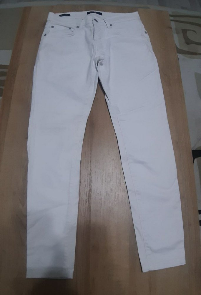 Beyaz kadın jean pantolon, 28/32 beden hediye gelmişti bir kere giyildi dar geldiği bir daha giyilmedi.