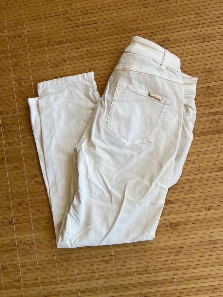 Beyaz pamuklu kumaştan, salaş kesim ve normal midi boyda olan bu pantolon, günlük kullanım için rahat ve sade bir stil sunar. Desensiz tasarımıyla zahmetsiz şıklık katar.