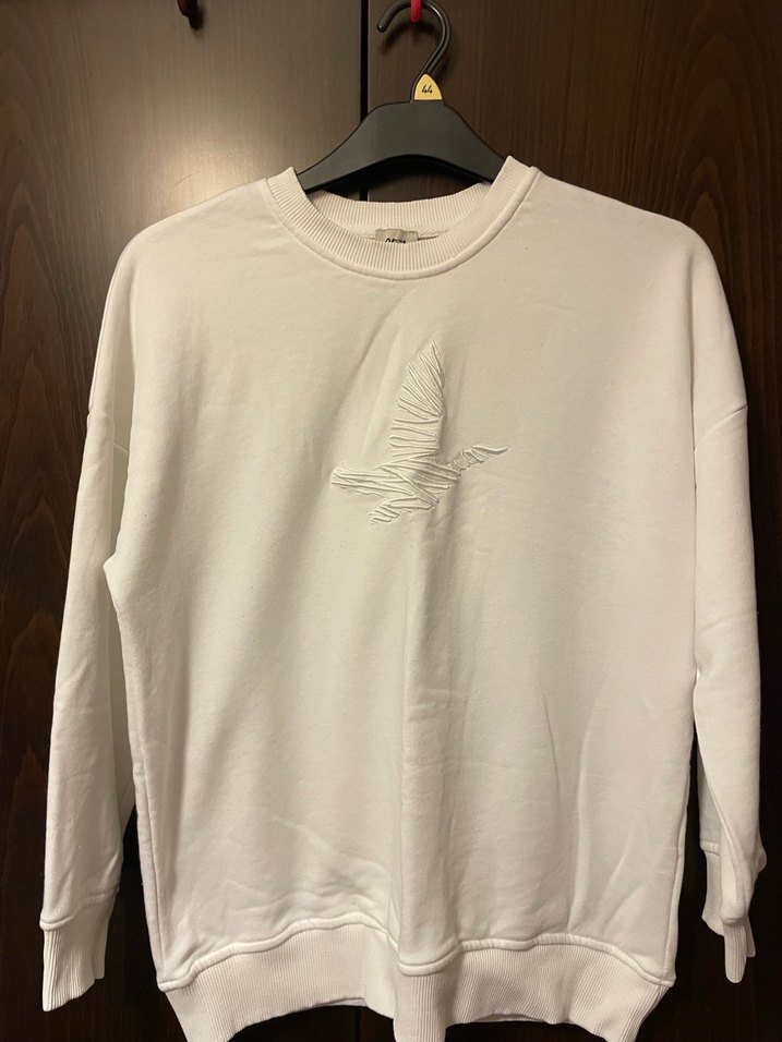 Beyaz pamuklu, uzun kollu ve yuvarlak yakalı sweatshirt. Bol kesimi ve baskılı deseniyle günlük kullanıma uygundur. ️