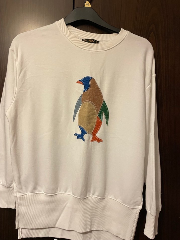 Beyaz pamuklu sweatshirt, bisiklet yaka ve uzun kollu. Rahat kesimi ve parlak Velcro detayıyla günlük kullanıma uygun.