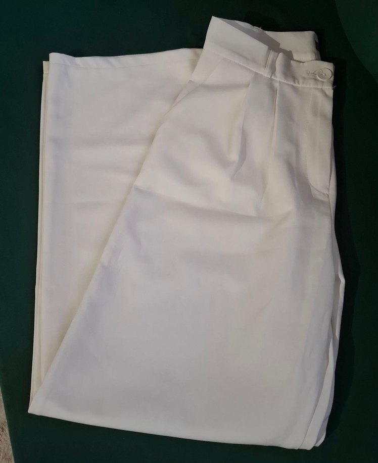Beyaz Kadın Pilili Kumaş Pantolon
