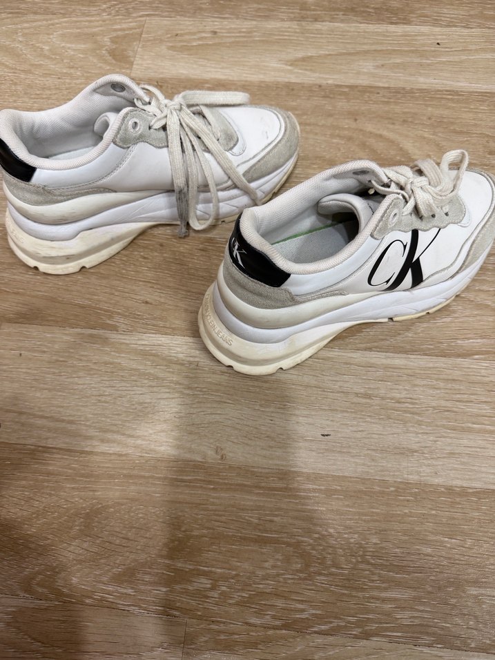 Beyaz kadın platform spor ayakkabılar, kauçuk tabanlı ve sokak modasına uygun. Gri detaylı sade tasarımıyla rahat ve şık bir görünüm sunar. Kirli diye bu fiyata veriyorum, yıkanırsa tertemiz olur