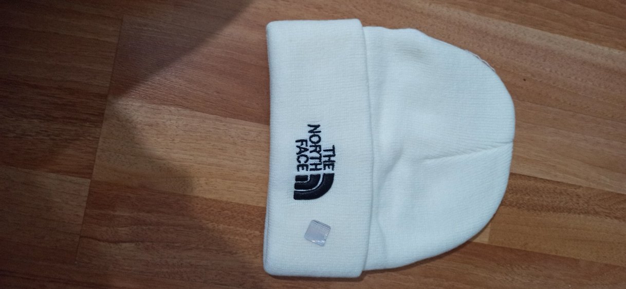 Yumuşak ve sıcak kumaştan beyaz kadın bere, Velcro detaylı ve The North Face logosu ile casual sokak stiline uygun. ❄️