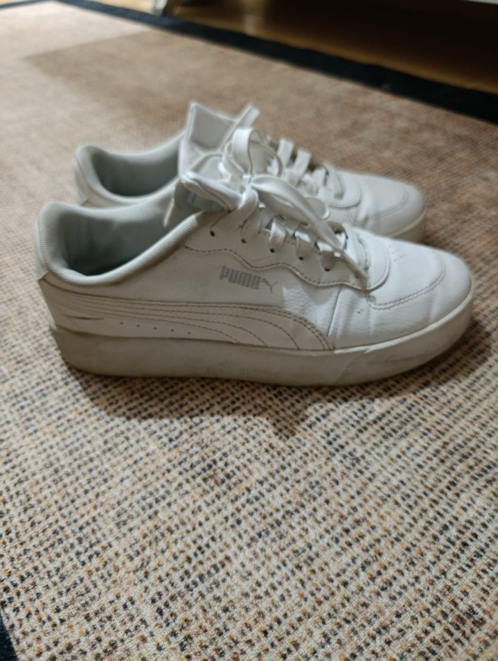 Beyaz renkte, kama topuklu kadın spor ayakkabısı. Kauçuk tabanlı, spor ve rahat sokak stili için uygun, desen içermeyen şık tasarım. 37,5 yırtıgı ne yok temızlenınce cok ıyı durur