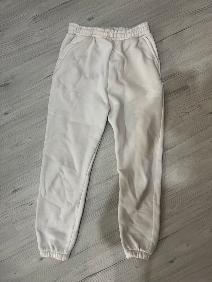 Leke var,leke çıkarıcı ile çıkabilir.Yumuşak 3 iplik şardonlu kumaştan yapılmış, rahat kesim beyaz kadın eşofman altı. Günlük kullanım için zahmetsiz şıklık sunar. ♀️