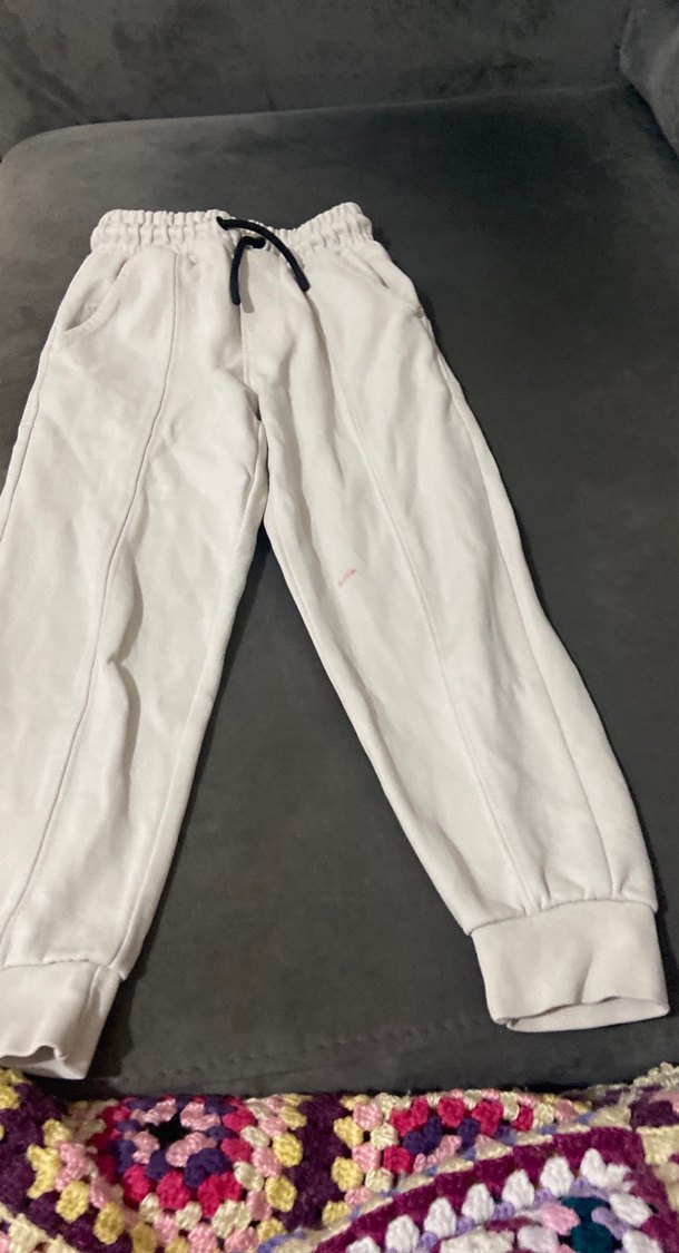 Rahat kesim, beyaz, bağcıklı ve manşetli kadın eşofman altı. Yumuşak ve sıcak kumaştan, günlük rahatlık için uygundur. ♀️