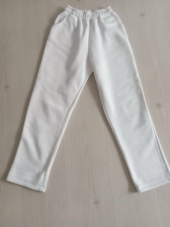 Beyaz, rahat kesim ve midi boy kadın eşofman altı. Yumuşak ve sıcak kumaştan, elastik bel bantlı. Günlük kullanım için sade ve athleisure tarzında. ♀️