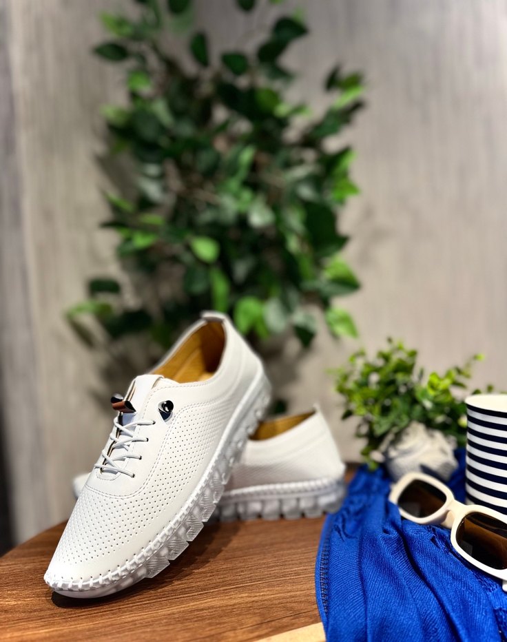 Bağcıklı, beyaz kadın spor ayakkabısı.Streetwear ve spor için uygun. 36-37-38-39-40 numaraları mevcut. Toptan da satılır.