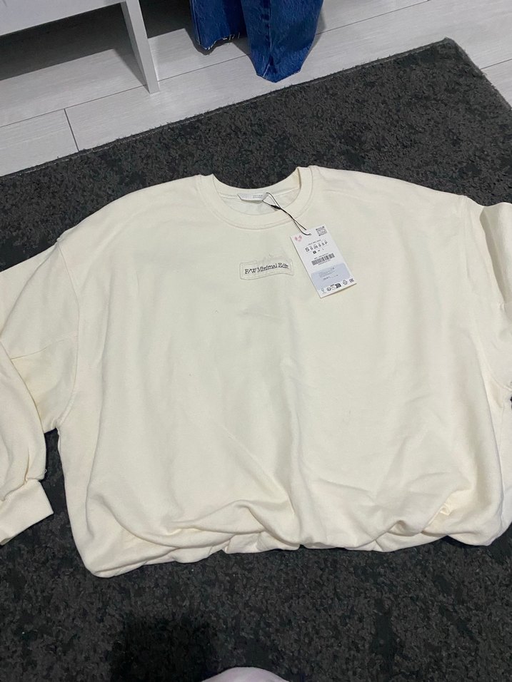 Beyaz renkli, yuvarlak yaka ve uzun kollu kadın sweatshirtü, yumuşak ve sıcak kumaştan yapılmıştır. Salaş kesimi ve baskılı detayıyla günlük rahatlık ve sokak modasına uygundur. Renk ekru