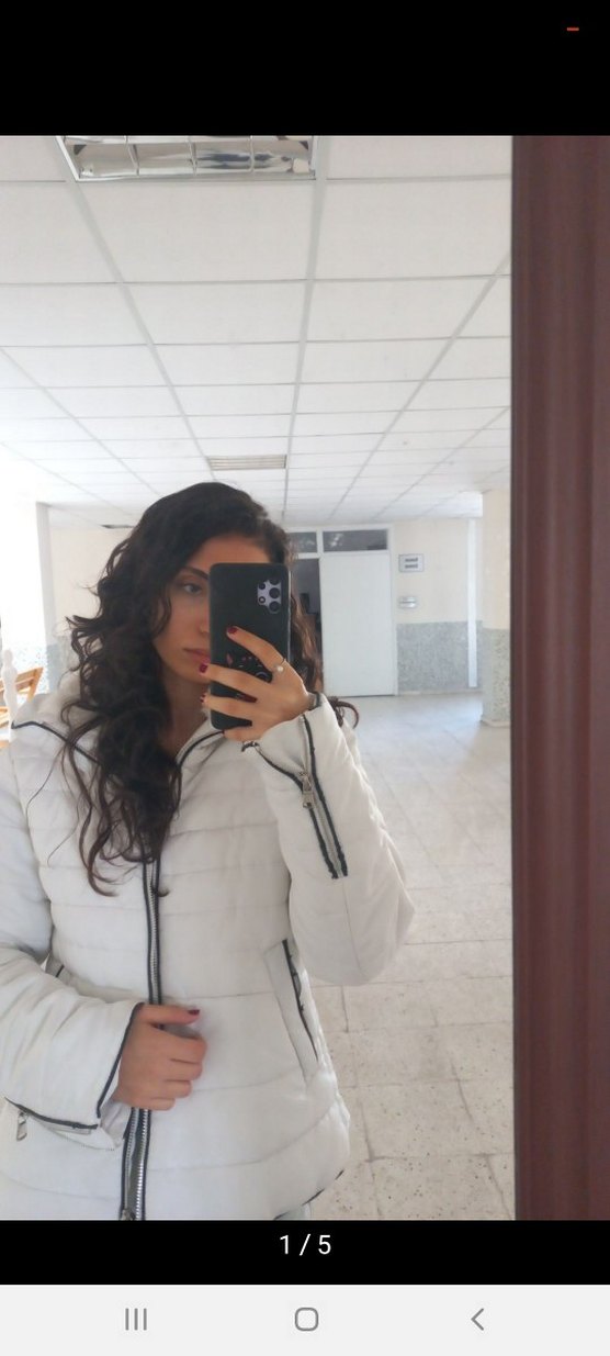 Beyaz, uzun kollu, yüksek yakalı, şişme ve kısa kesim kadın mont. Sıcak tutan yumuşak kumaştan, günlük sokak stili için uygun. ❄️