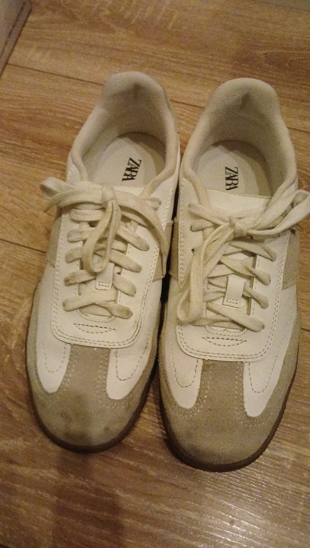 Beyaz renkte, düz tasarımlı kadın sneakers, kauçuk tabanlı ve wedge topukludur. Minimalist streetwear tarzında, günlük kullanıma uygundur. İç kısmında 'ZARA' markası bulunur.