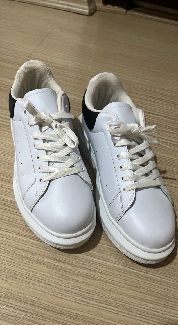 Beyaz, düz tabanlı kauçuk kadın spor ayakkabısı. Desensiz, sade tasarımıyla günlük rahat kullanıma uygundur. Trend sokak stili için zahmetsiz şıklık sunar.