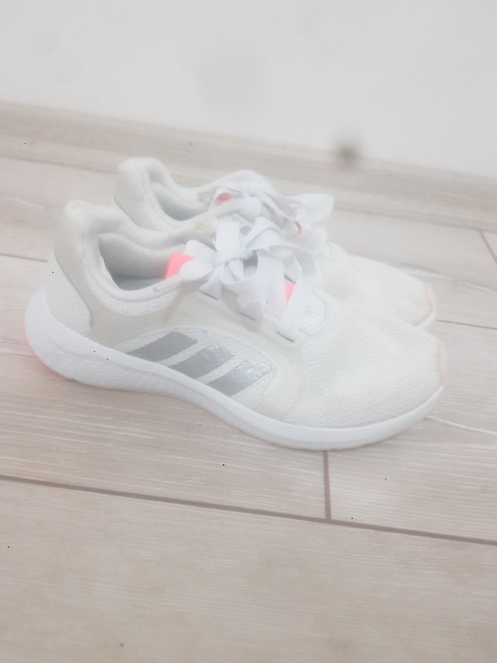 Beyaz renkli, elastik detaylı, stilettolu topuklu kadın spor ayakkabısıdır. Kauçuk malzemeden yapılmış, çağdaş ve rahat bir stile uygundur.