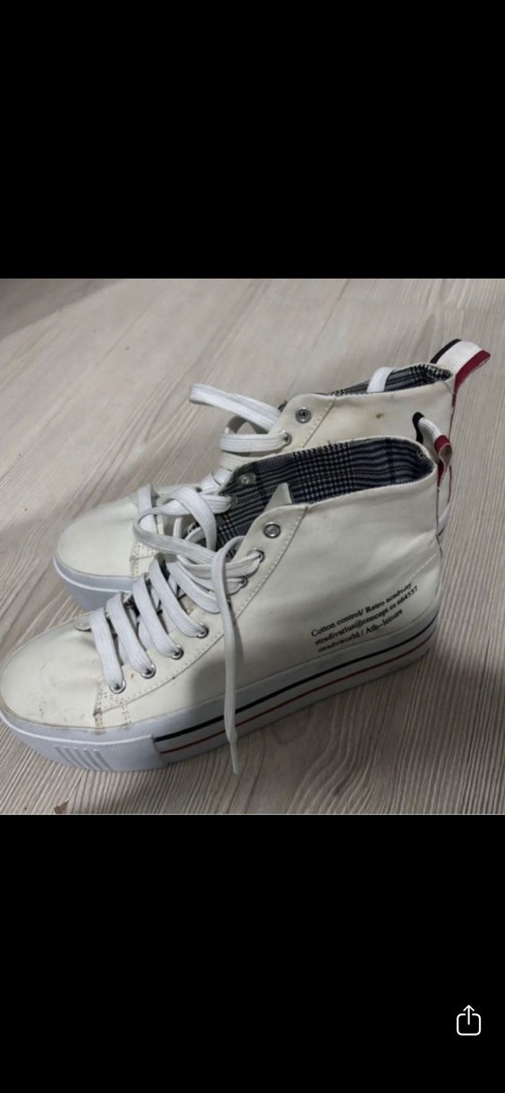Beyaz kadın sokak stili spor ayakkabılar, stiletto topuklu ve kauçuk tabanlı. İç kısmında gri desen ve cırt cırtlı detay bulunur. Günlük kullanım için uygundur.
