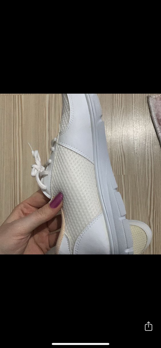 beyaz kadın spor ayakkabısı. Kauçuk tabanlı, desensiz ve hafif malzemeden üretilmiştir.