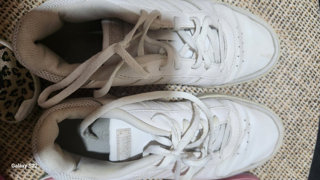 Gri detaylara sahip beyaz kadın spor ayakkabısı, athleisure ve street wear tarzına uygun, rahat ve günlük kullanım için uygun. Adidas orjinal