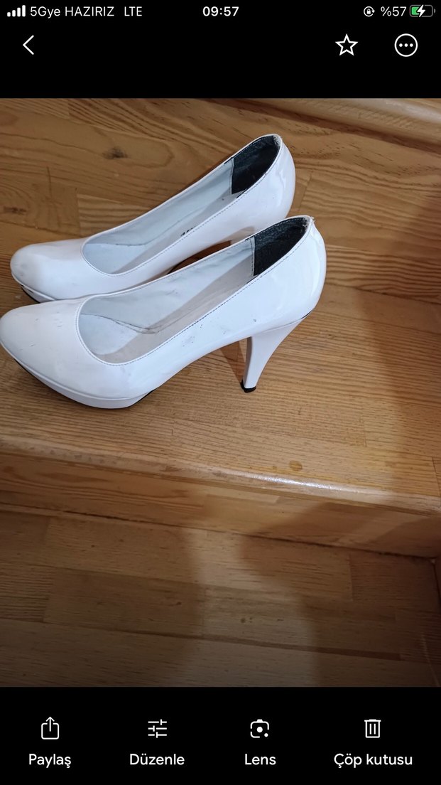 Beyaz renkte, lastik malzemeden yapılmış, desen içermeyen stiletto topuklu ayakkabılar. Ofis kullanımı için klasik ve minimal bir şıklık sunar.