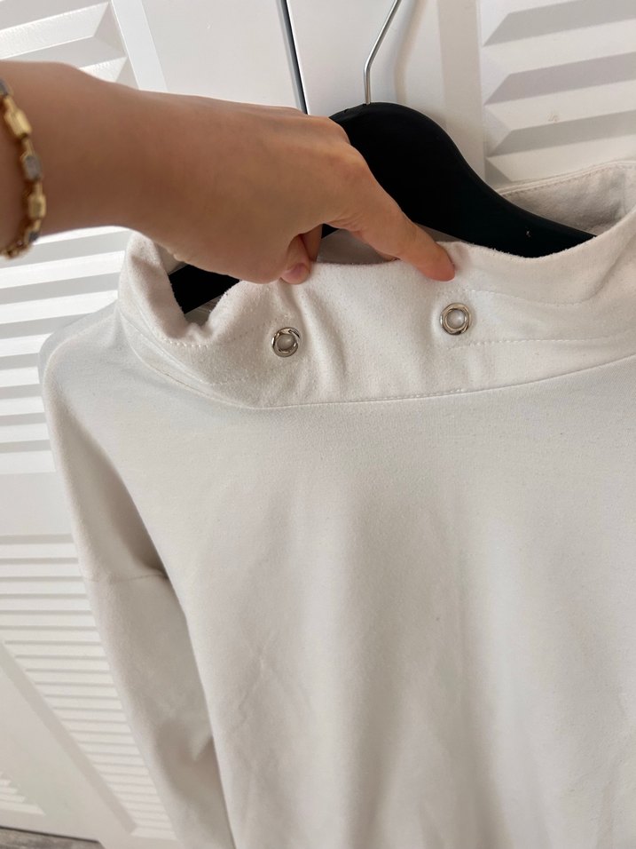 Pamuklu, yuvarlak yaka ve uzun kollu, beyaz sweatshirt, tunik