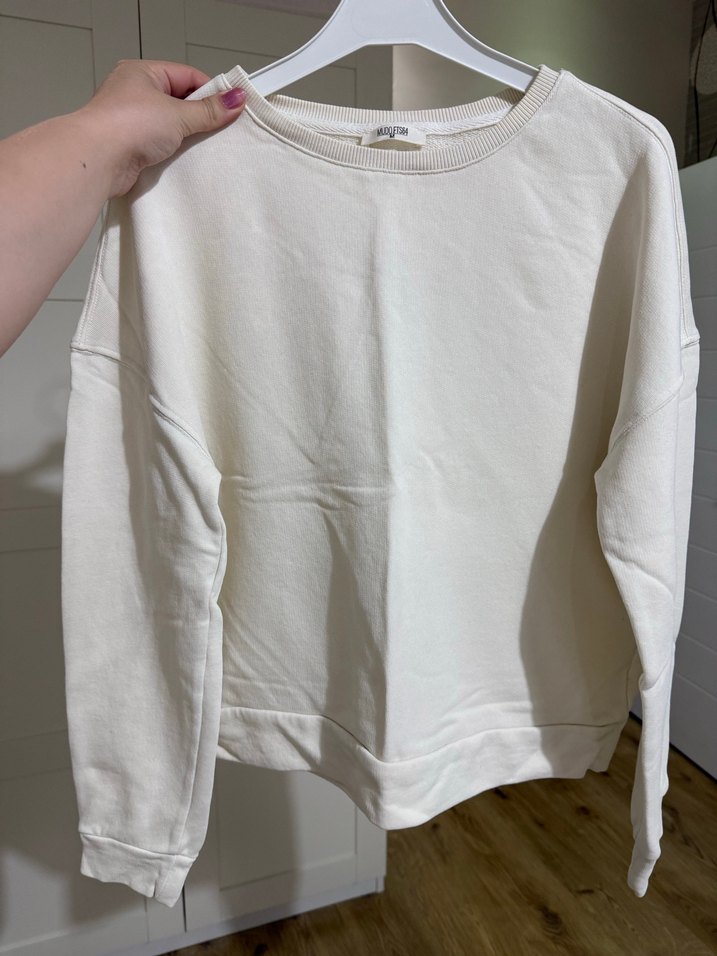 Beyaz, yuvarlak yakalı ve uzun kollu sweatshirt. Rahat kesimi ve sade tasarımıyla gündelik sokak stiline uygundur. ☁️