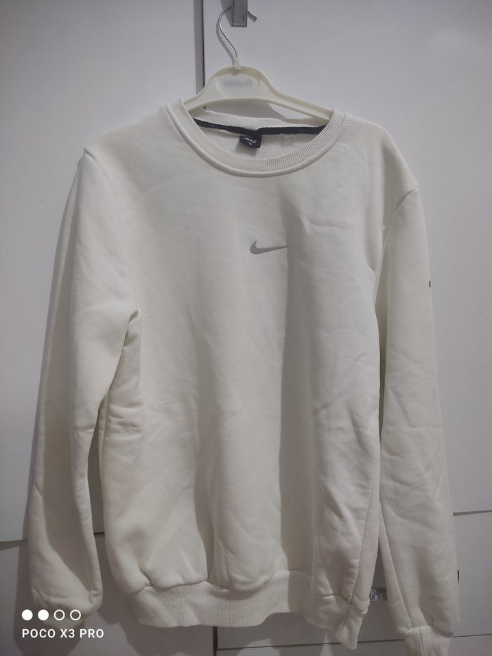 Yuvarlak yaka, uzun kollu beyaz Nike kadın sweatshirt. Rahat kesim ve yumuşak, sıcak kumaş ile günlük sokak stili için uygun. ♂️