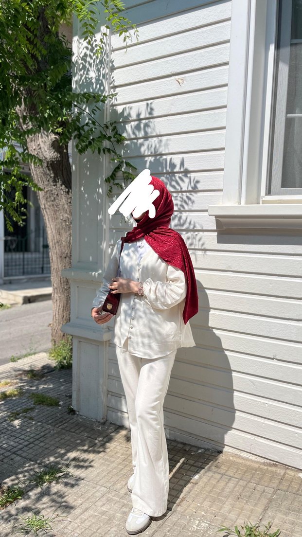 Hafif krem renkte, dökümlü tasarıma sahip üst alt takım.keten kumaştan üretilmiştir, mütevazı sokak stiline uygundur. 1kez kullanılmıştır.