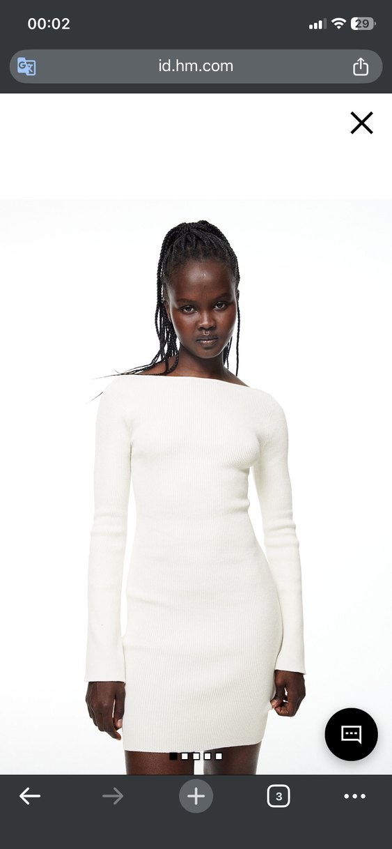 Beyaz triko midi elbise, tek parça ve uzun kollu. İnce vücuda oturan kesimi ve kayık yaka detayıyla sade ve şık bir görünüm sunar. Günlük kullanıma uygundur.