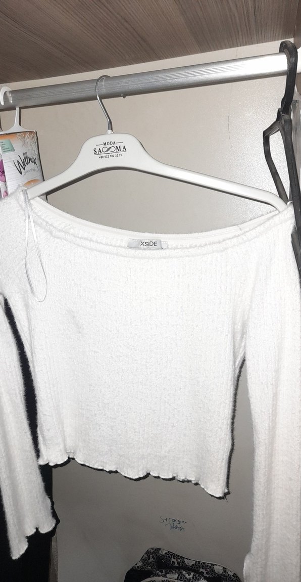 Beyaz Kadın Triko Uzun Kollu Bluz