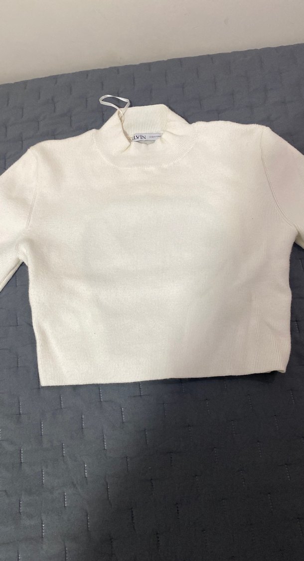 Beyaz, uzun kollu, yuvarlak yaka ve vücuda oturan kadın kazağı. Yumuşak ve sıcak kumaşıyla günlük sokak stiline uygundur. ✨