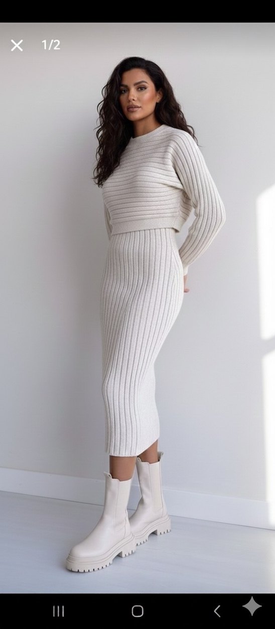 Fitted kesim, uzun kollu, beyaz triko elbise. Yumuşak triko kumaştan, crew neck yakalı ve sade tasarımlı, günlük kullanıma uygun.
