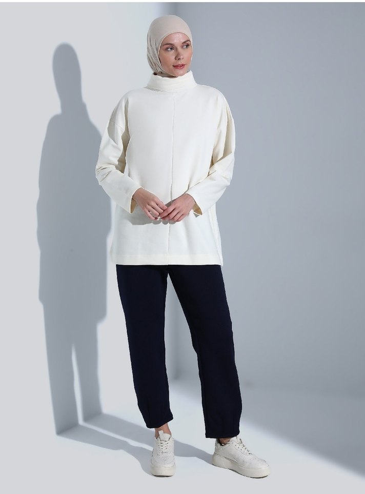 Beyaz Kadın Yüksek Yakalı Salaş Tunik