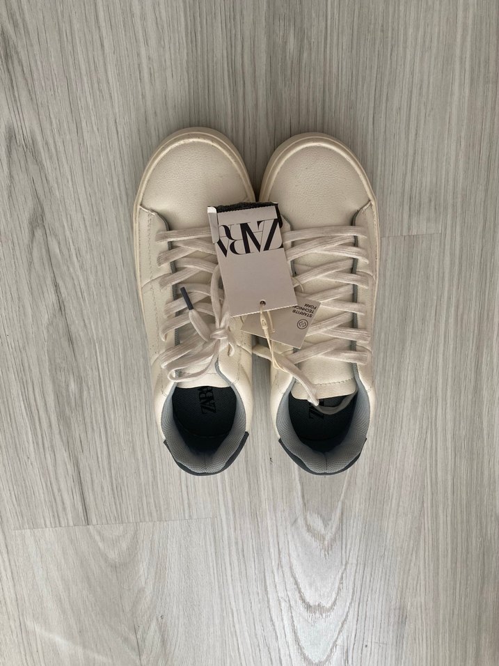Beyaz kadın sneakers, Minimalist, trend sokak tarzı ve rahat şıklık sunar. Zaradan aldım etiketli