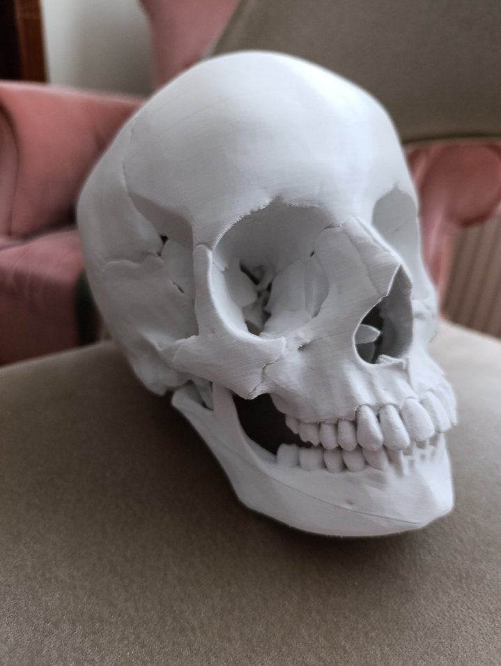 insan kafatası model kiti, detaylı anatomik özelliklere sahip. Eğitim veya sergi için uygun.