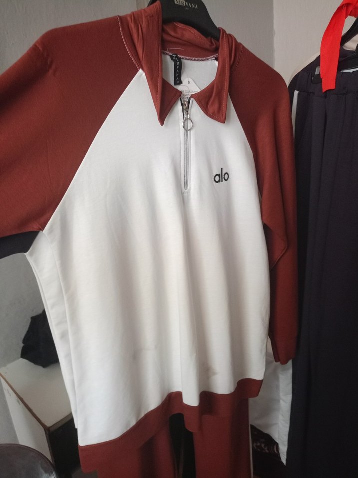 Kadınlar için oversize kesim, uzun kollu ve uzun boylu spor takım. Pamuklu kumaştan, bisiklet yaka ve fermuarlı. Koyu renk baskılı ve göğsünde 'alo' logosu bulunur sayfamı imceleyin çeşitler için