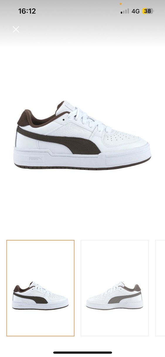 Beyaz ve koyu kahverengi detaylı, bağcıklı, düz tabanlı Puma spor ayakkabısı, sportif sokak tarzı için uygundur. Bir iki defa giydim ama yeni gibi