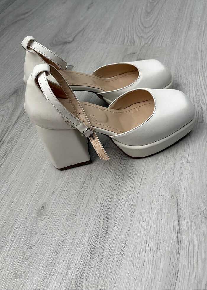 Beyaz kalın topuk platform ayakkabı