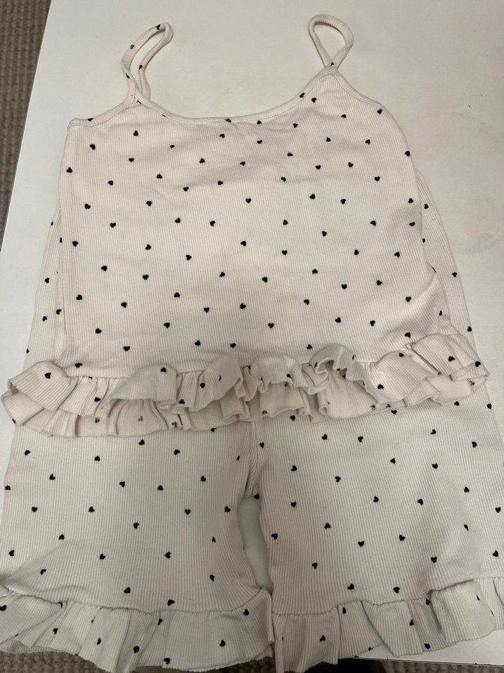 Beyaz Kalp Desenli Fırfırlı pijama takımı