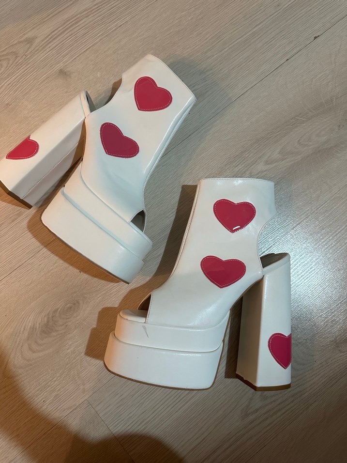 Beyaz Kalp Desenli Platform Topuklu Ayakkabı