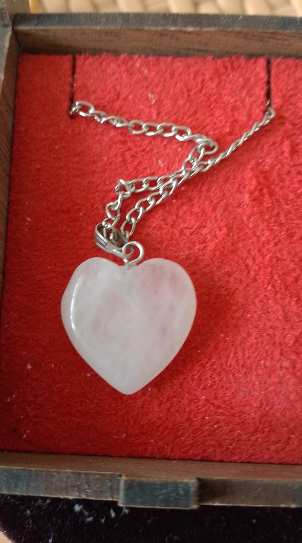 Beyaz Kalp Detaylı pembe kuvars Midi Kolye