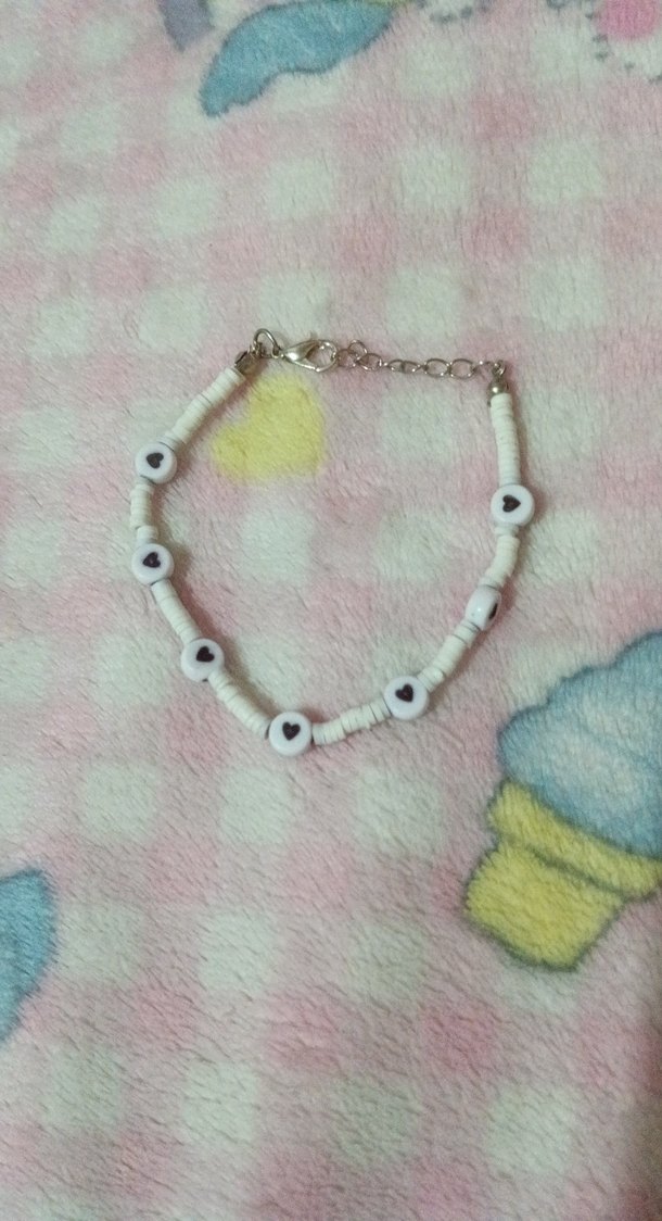 Beyaz Kalp Figürlü Boncuklu Bileklik