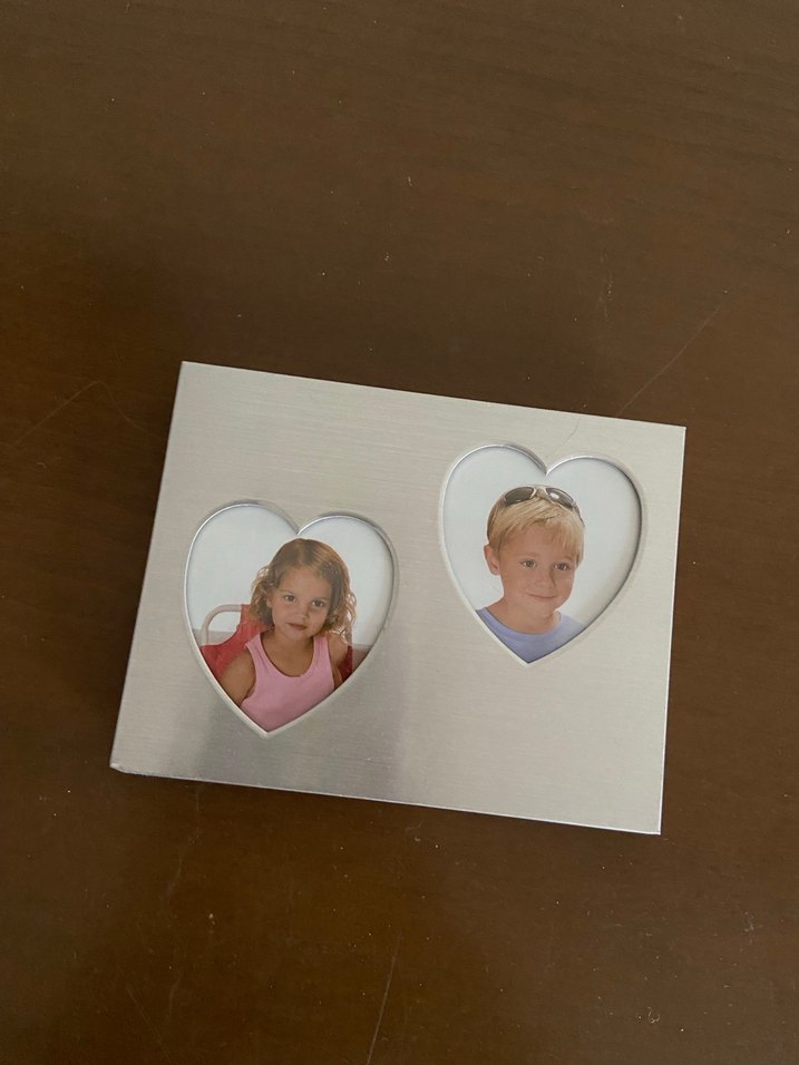 İki kalp şeklinde fotoğraf alanı bulunan beyaz renkli, şık ve sade çift fotoğraf çerçevesi. ❤️