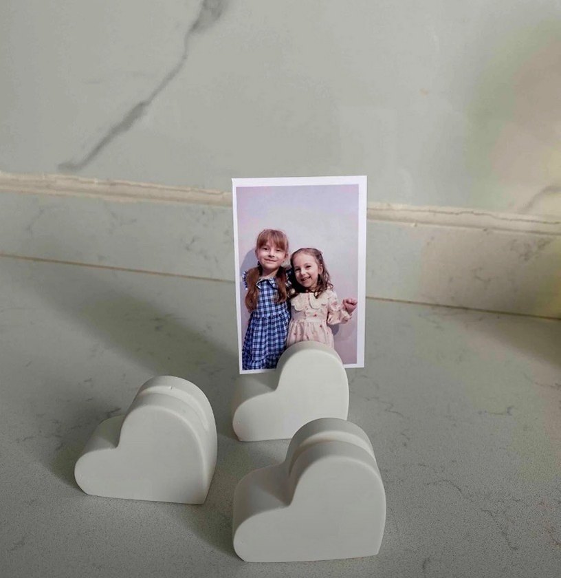 Beyaz kalp şeklinde çocuk rafı, fotoğraf veya küçük eşyaları sergilemek için sade ve hafif bir tasarıma sahiptir. Kompakt boyutu çocuk odalarına uygundur.