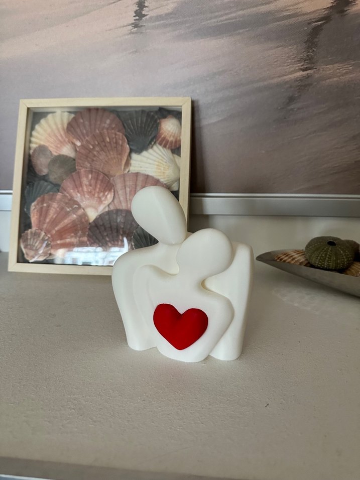 Sevgililer Günü Kalpten Aşık Çift Biblosu. Yükseliği 10 cm, genişliği 8 cmdir. 3d yazıcı ile Pla malzemeden üretilmiştir. İstenilen renkte tasarlanabilir.