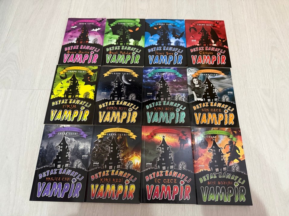 Renkli kapaklara sahip, vampir temalı hikayeler içeren Beyaz Kanatlı Vampir kitap seti 1-12 arası tüm kitaplar. Defosu bulunmamaktadır fiyatta pazarlık olabilir.