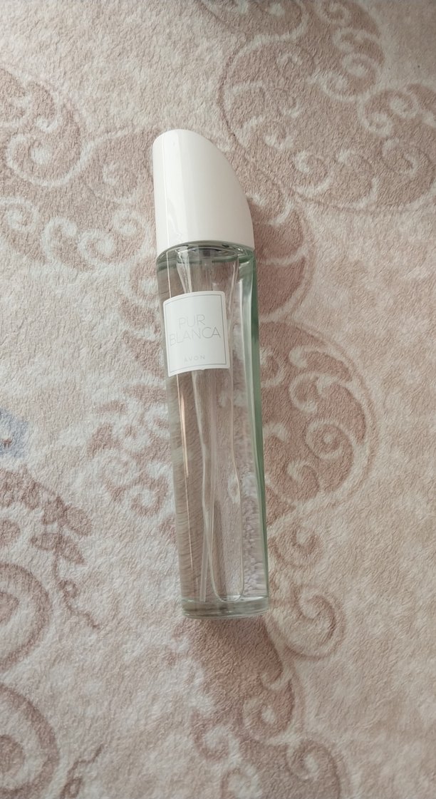 Beyaz kapaklı şeffaf şişede kadın parfümü, ferah ve zarif bir koku sunar.