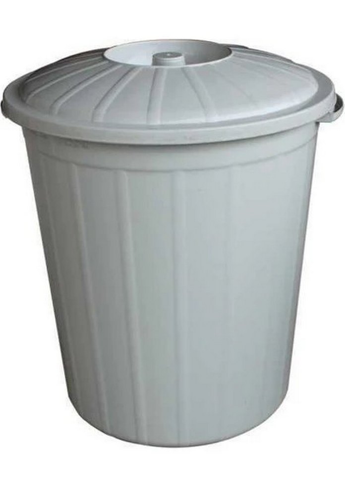 Gri kapaklı beyaz plastik çöp kovası, mutfakta kullanıma uygun basit ve kullanışlı tasarıma sahiptir. ️