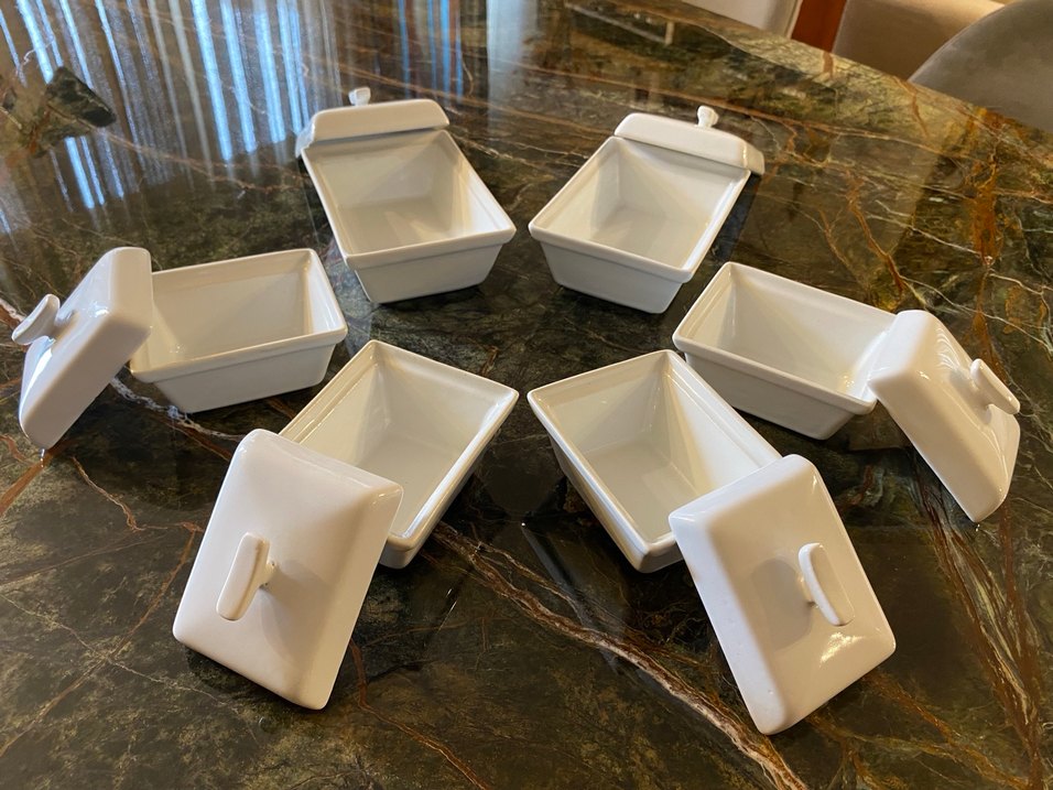 Kapaklı beyaz seramik saklama kabı, yiyecekleri saklamak ve servis yapmak için uygundur. Dayanıklı ve kolay temizlenir. 2 adet 10x14 cm 4 adet 8x10 cm