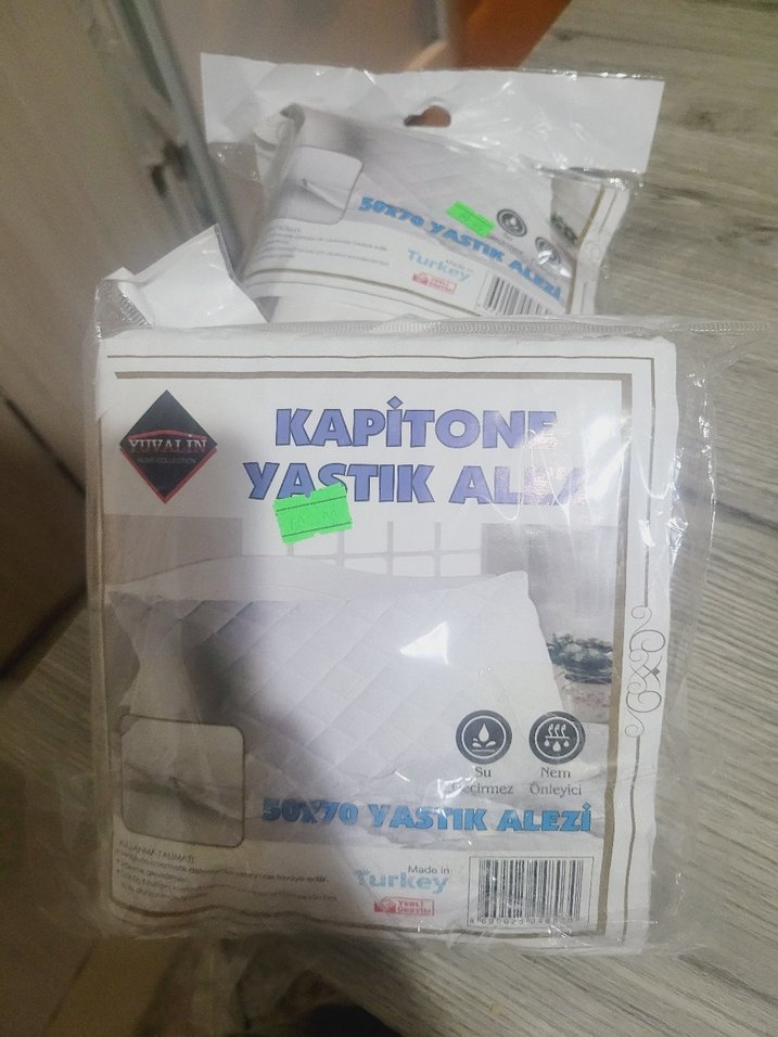 Baskılı kapitone beyaz yastık alezi, su geçirmez ve nem önleyici özelliklere sahip, Türkiye'de üretilmiştir. ️