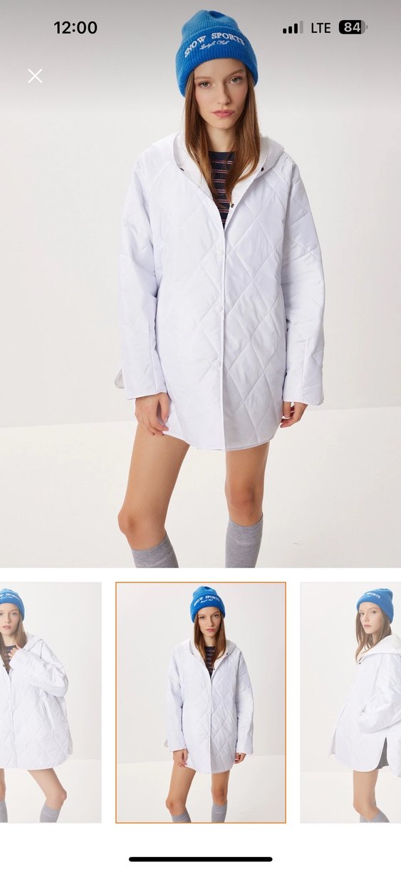 Kadınlar için pamuklu, uzun kollu, yüksek yakalı, beyaz midi boy bol kesim ceket. Minimalist ve zahmetsiz şıklık sunar, günlük kullanıma uygundur.