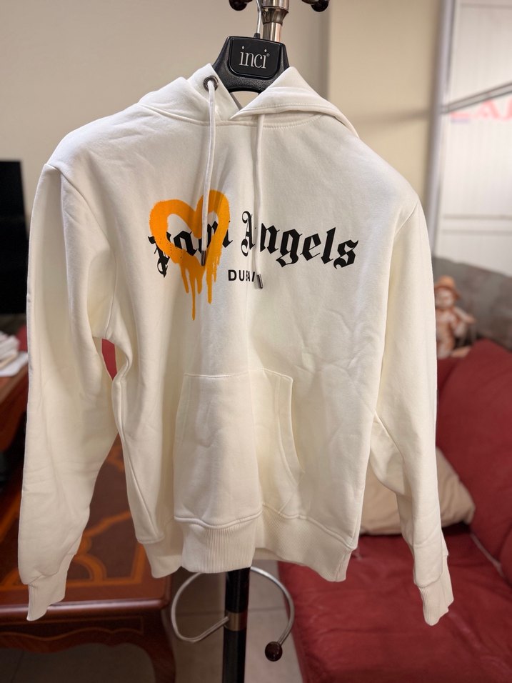 Uzun kollu, baskılı ve bol kesim beyaz sweatshirt. Önünde 'angels' yazısı ve kalp grafik bulunur. Yumuşak ve sıcak kumaştan yapılmıştır.