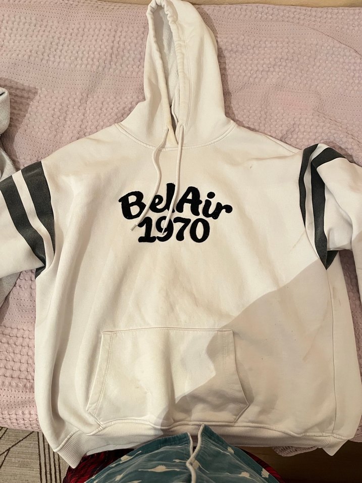 Beyaz, uzun kollu ve yuvarlak yakalı bol kesim sweatshirt. Siyah "BeAir 1970" baskısı ve kollarda kabarık detaylar bulunur. Yumuşak kumaştan üretilmiştir.